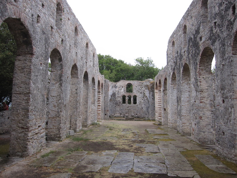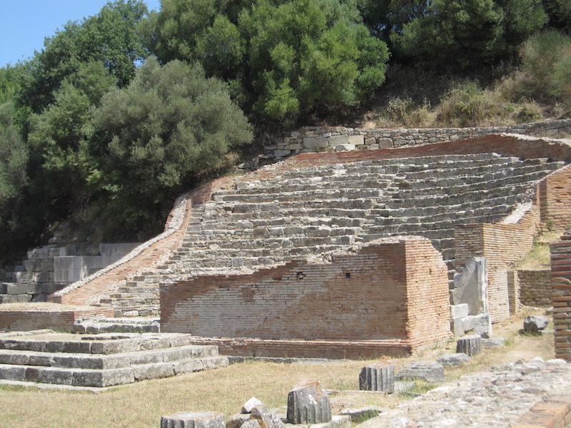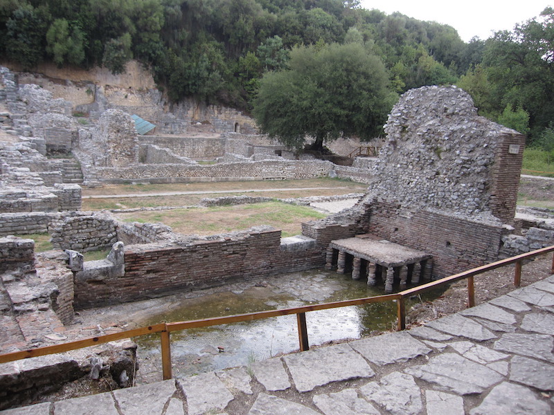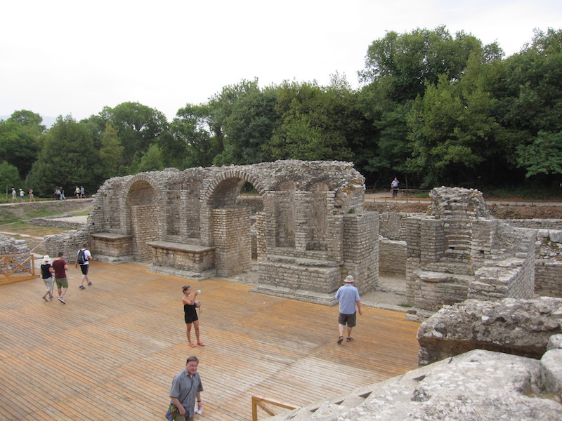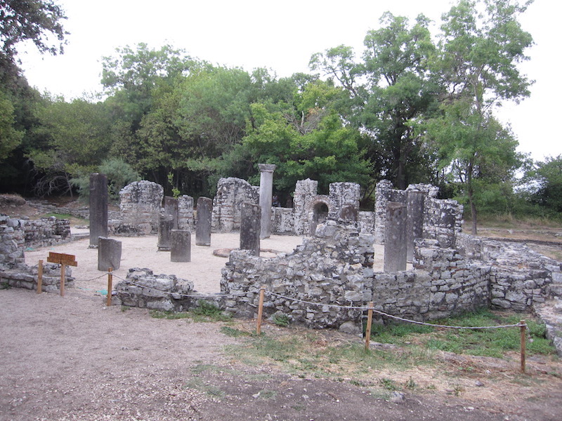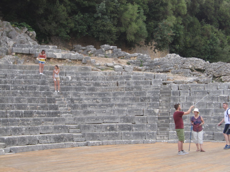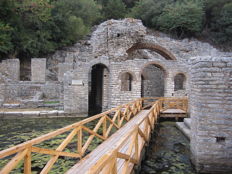 Die boten sich uns am nächsten Tag zu Hauf im malerisch gelegenen Butrint (in der Antike: Buthrotum, abgeleitet vom griechischen Wort ‚bous‘ – ‚Ochse‘; ein solcher soll der Legende nach von dem aus Troja kommenden Äneas den Göttern geopfert und ebendort tot zu Boden gestürzt sein). Die von 1928 bis 1936 von einem italienischen Team ausgegrabene antike Stätte liegt etwa 25 km südlich von Sarandë – im heutigen Butrint-Nationalpark, einer einzigartigen Wasserlandschaft, in der sich viele seltene (z.T. vom Aussterben bedrohte) Tierarten aufspüren lassen. Im 8./7. Jahrhundert v. Chr. von den Illyrern als Festung angelegt wurde Butrint im 6. Jhdt. griechische Kolonie und 167 v. Chr. Teil des Römischen Reiches.