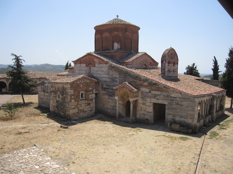 Neben dem antiken Apollonia ist aber auch die Marienkirche und das zugehörige Kloster aus dem 13./14. Jahrhundert zu bestaunen. Erstere ist nicht zuletzt aus den Sitzbänken des antiken Theaters errichtet worden, hat eine hoch aufragende Vierungskuppel und einen Pronaos, der an Kreuzgänge in Apulien erinnert. An dessen Ostwand ist das stark beschädigte Porträt des byzantinischen Kaisers Michael VIII. (1261 – 82) mit seiner Familie zu sehen. Im Refektorium des Klosters sind gleichfalls stark beschädigte Fresken zu sehen, die einen anderen Stil erkennen lassen und aus dem 14. Jahrhundert stammen. Außerdem sind im Klostergebäude – heute Museum – manche Statuen, Büsten und Inschriften zu bewundern, die sich den Ausgrabungen verdanken. Eine preist eine Ehefrau, die laut Inschrift 42 Jahre mit ihrem Gatten „sine querella“ gelebt haben soll.