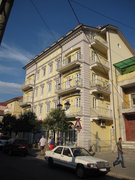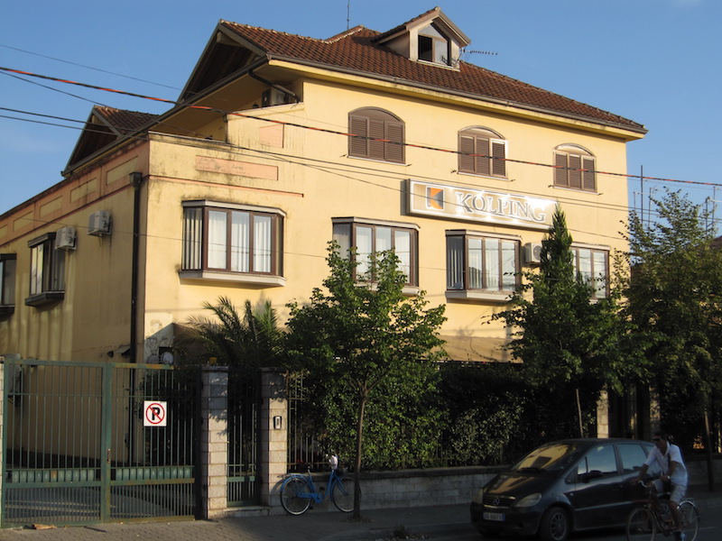 Wir spazierten an sehr schön restaurierten Häusern vorbei, aber auch an Wohnblocks aus kommunistischer Zeit und neu erbauten Villen, die zum Teil von hohen Mauern umgeben waren, und stießen schließlich auf das Kolpinghaus der Stadt. Bis 1967 war Shkodër das Zentrum des Katholizismus in Albanien. Nachdem das Land aber von Enver Hoxha zum ersten atheistischen Land der Erde proklamiert worden war, wurden die Kathedrale in eine Sporthalle und das erzbischöfliche Palais in ein Hotel umgewandelt.