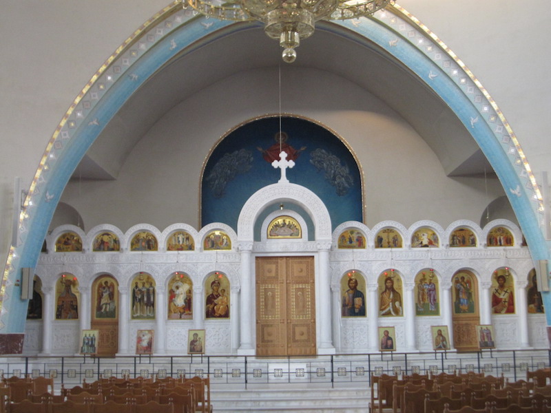 Anschließend machten wir uns noch einmal nach Gorica auf, um die am Vortag verschlossene Kirche des Hl. Spiridon doch noch von innen zu sehen. Und auch dort wartete schon wieder ein Reiseführer auf uns. Dieses Mal war es ein noch recht junger Schüler, der offensichtlich sein Englisch trainieren und sein Taschengeld aufbessern wollte. Er erläuterte uns vor allem die Ikonostase und wies uns ausdrücklich auf die Fresken hin, deren Zerstörung in der Hohxa-Diktatur geschehen sei.