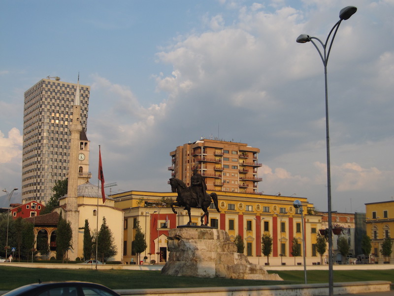 Erst am Spätnachmittag machten wir uns zu einem Spaziergang rund um den Skanderbeg-Platz in der Stadtmitte auf. Tiranë, 1920 zur Hauptstadt erkoren, hat heute etwa eine halbe Million Einwohner und ist damit auch die bevölkerungsreichste Stadt Albaniens. Unweit des Skanderbeg-Platzes trafen wir auch gleich auf die Statue des Mannes, der Tiranë 1614 gründete: Suleyman Pasha Mulleti.